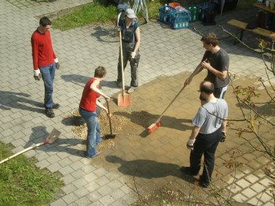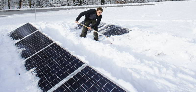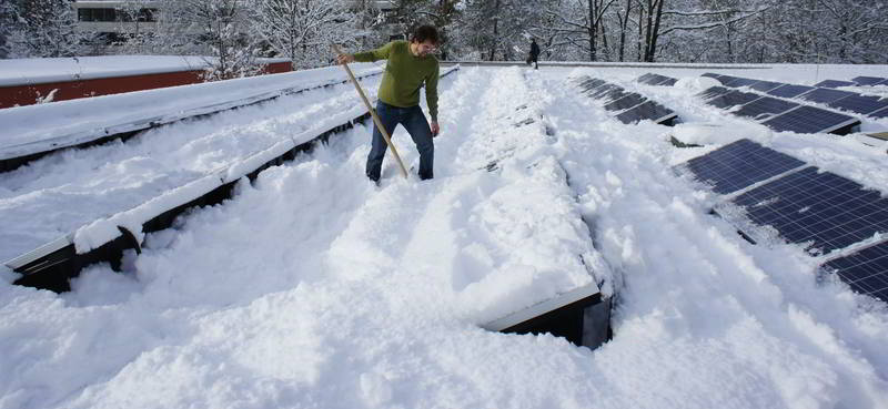 10.12.2010: Fleißige Helfer befreien die Module vom Schnee