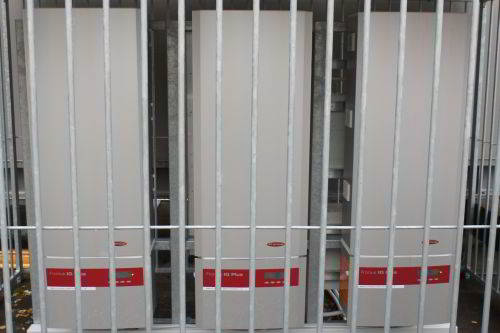 Die Wechselrichter speisen gut gesichert ins Netz ein: